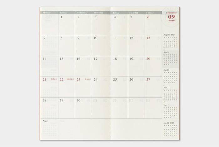 • Traveler's Notebook Agenda Mensuel 2026